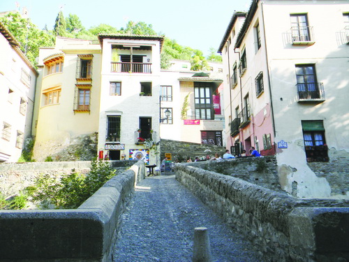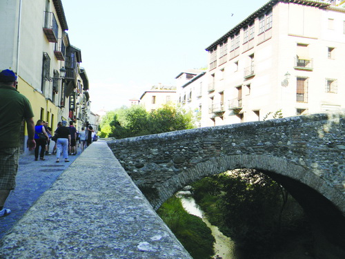 في هذا الشارع نَجول على الجسور التي تَمرّ فوق النهر الذي يفصل السوق القديم عن الجبل الذي عليه بُني قصر Alhambra الحمراء.