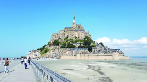 على جزيرة قريبة من ساحل نورماندي وبالقرب من مدينة بريتاني Brittany شمال فرنسا، يقع ثالث أشهر معلم سياحي فرنسي، يجذب بِمفرده أربعة ملايين سائح سنوياً، رغم أنه معزول ولا يرتبط باليابسة، سوى بواسطة جسر ضيق، شُيّد سنة1880م. إنها قلعة مونت سانت ميشيل Mont St-Michel التي ظلت لفترة طويلة بعيدة عن الأنظار والاهتمام لانعزالها في جزيرة، ولم يكن يربطها باليابسة آنذاك سوى طريق طبيعي، يغطيه الماء طوال اليوم، ولا يظهر إلا عندما يحدث الجزر وتنحسر المياه عدة ساعات من اليوم.