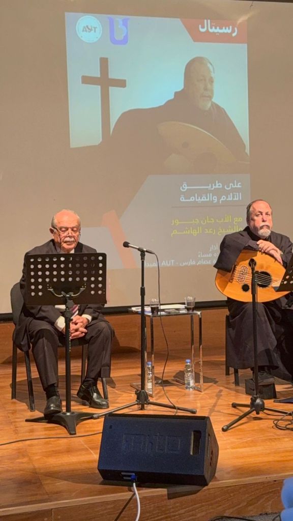 نظمّت الجامعة الاميركية للتكنولوجيا AUT أمسية تراتيل وقراءات شعرية موسيقية، على مسرح اوديتوريوم عصام فارس في حرم الجامعة، بعنوان “على طريق الالام والقيامة “، وذلك في اطار برنامج جامعة مدى الحياة. احياها الشاعر رعد الهاشم والاب جان جبور، بحضور عدد من رؤساء البلديات والمخاتير الحاليين والسابقين، فاعليات ودكاترة الجامعة ومدعويين.