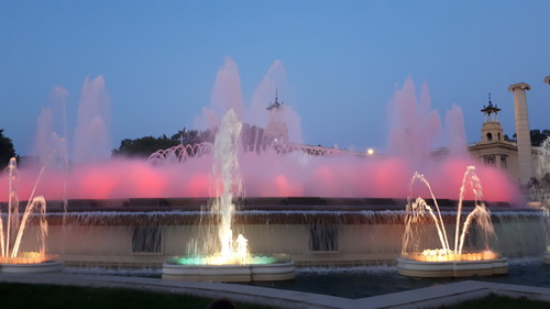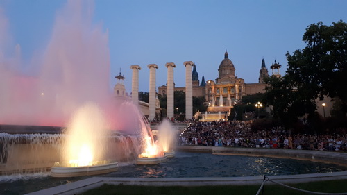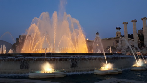 ساحة اسبانيا في برشلونا، ساحة تبهر الأنظار، حيث تدخلها فتسمع أنغام الموسيقى في أرجائها، وتتراقص نوافير المياه على انغام هذه الموسيقى، وتَخترقها ألوان الإضاءة التي تتلاعب بِمشاعر الناظر إليها، في رقصة متمازجة من المياه والألوان والموسيقى.