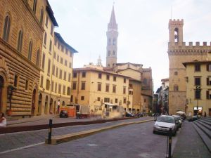 ساحة Seniorina أو ساحة السيدة، يَمثُل فيها تِمثال دافيد الشهير، رائعة ميكيلانج. يَجتمع فيها الفنانون ليلاً، يرسمون ويغنّون ويتجوّل مئات من السياح من دول العالم كافّة. والممرات المؤدّية إلى الشوارع الداخليّة، تنفتح على أكبر محلات ومصانع الجلد الإيطالي العالي الجودة.